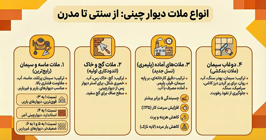 - ملات ۱ به ۴: ترکیبی استاندارد و اقتصادی برای دیوارچینی با آجر.